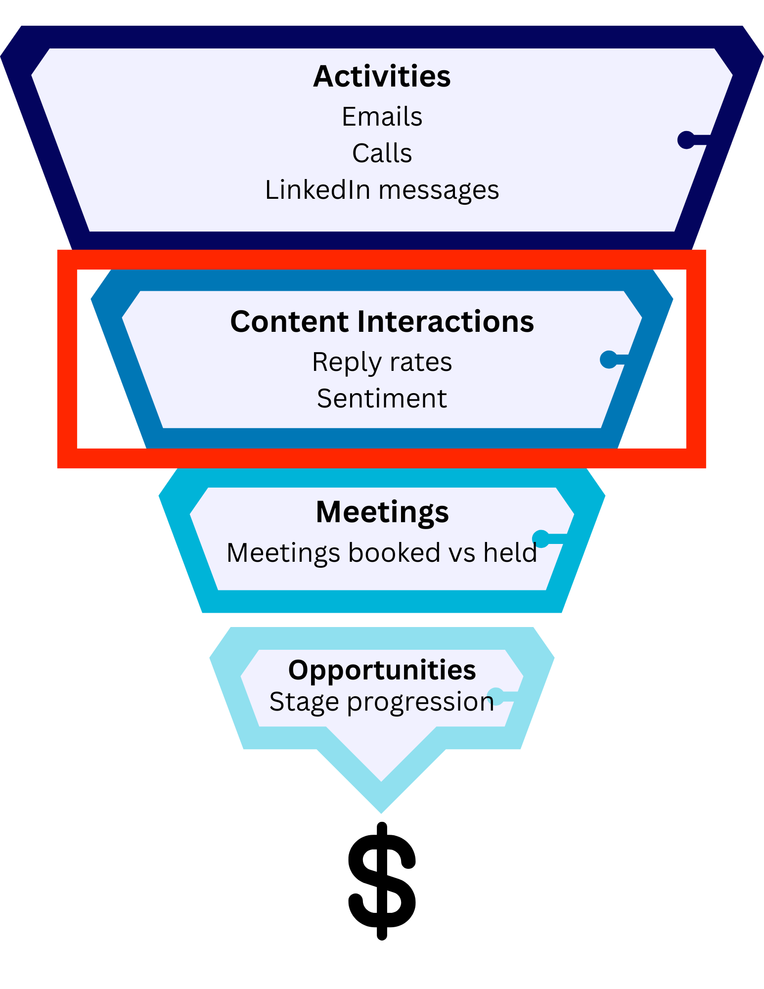 What if you’re getting no replies - and none of your messaging is landing with your target personas? We’ll create tiered outbound messaging that combines the on-brand focus of your marketing team and the human touch of your sales team. We’ll build a structure for your reps to focus their time where it matters - on personalizing notes to key personas with buying power.